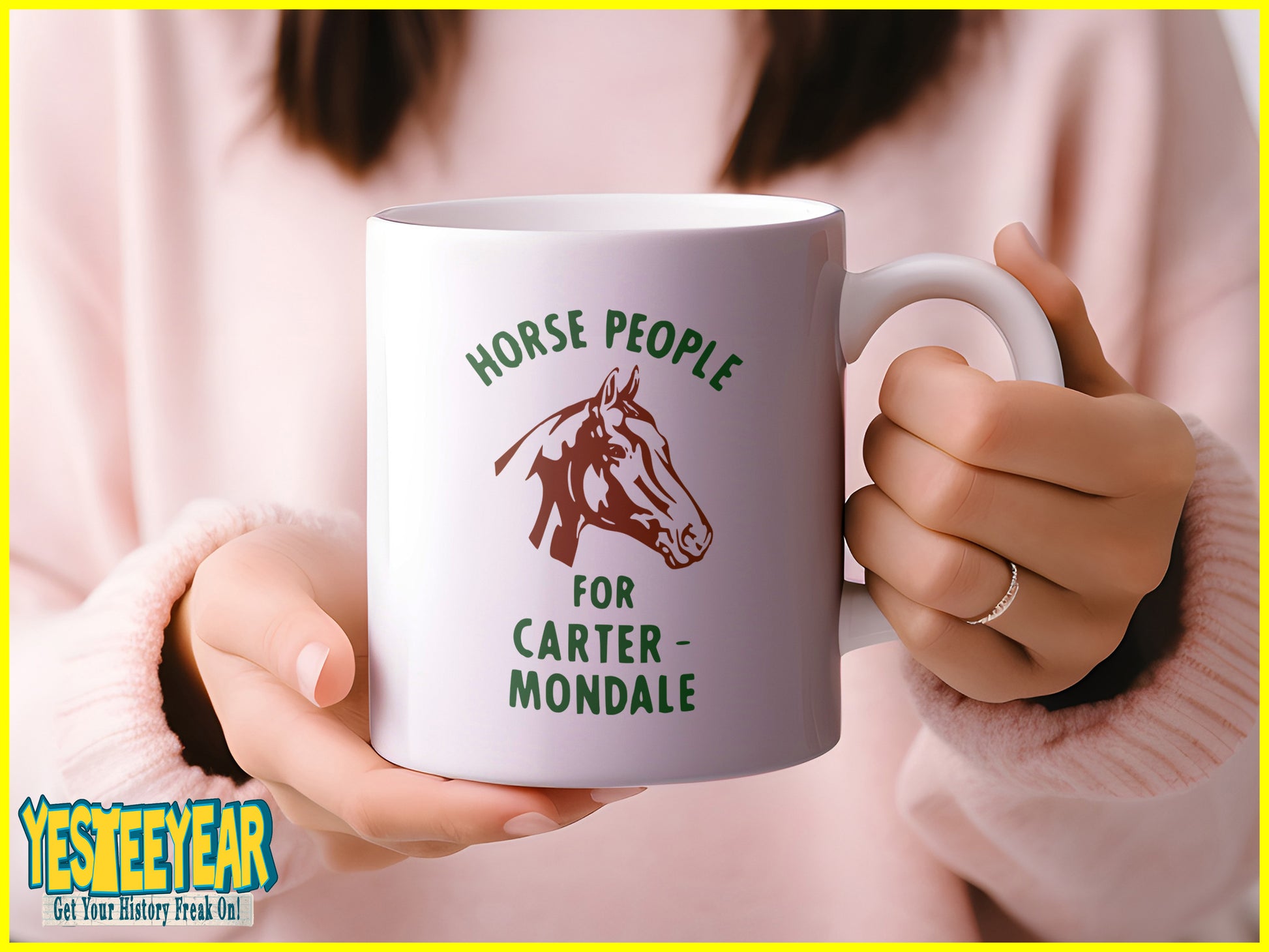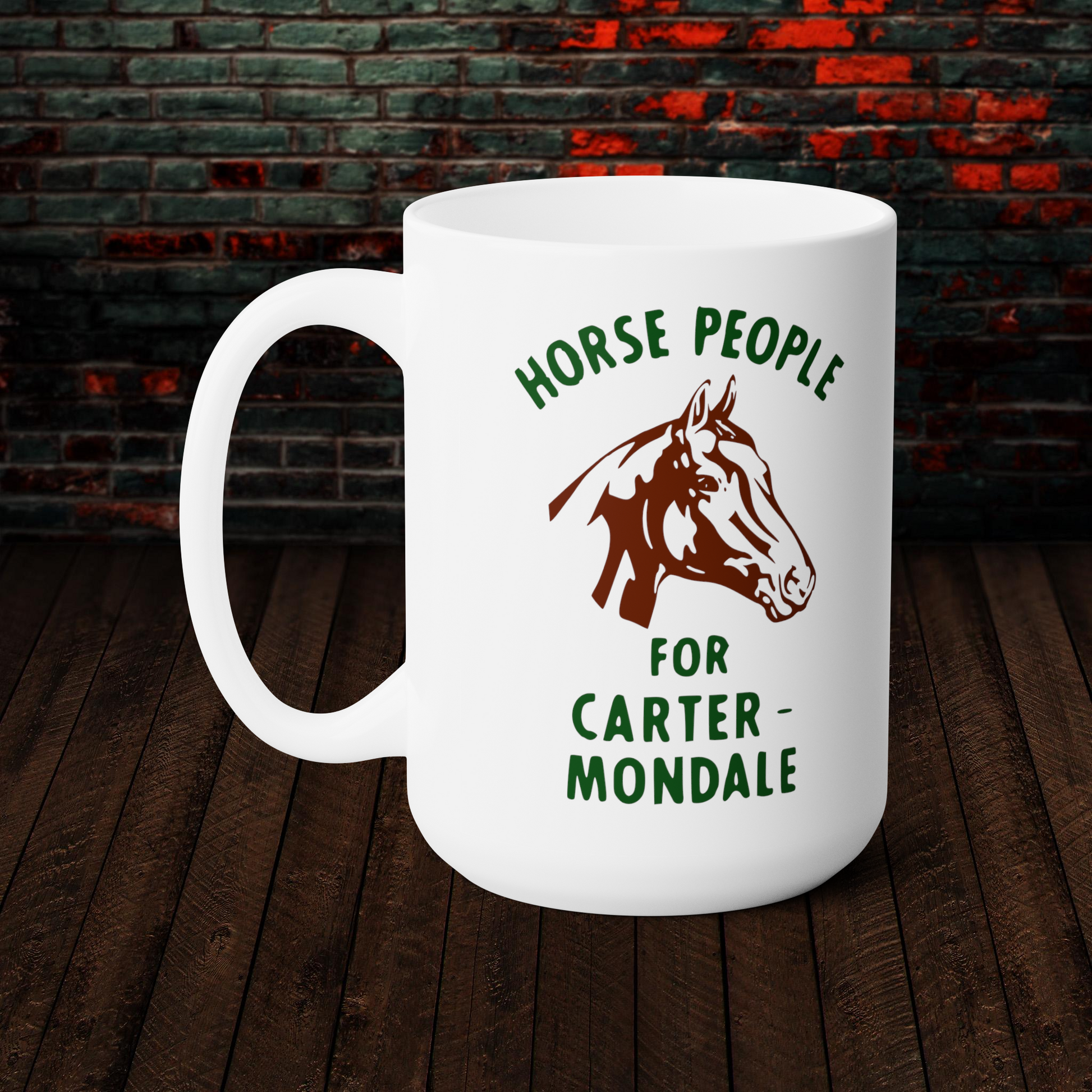 Inspired by a presidential campaign button for Jimmy Carter and Walter Mondale from the 1976 US Presidential Campaign in support from horse lovers everywhere!